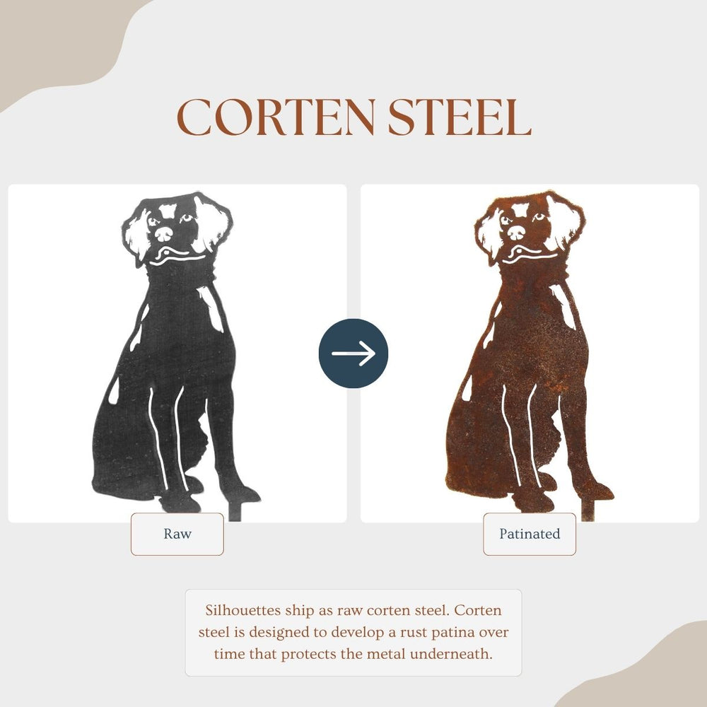 Metal Rescue silhouettes are handmade in the United States from sturdy 11 gauge premium weathering steel, also known as Corten steel. Each design is available in two different finishes- Corten steel and Black.
