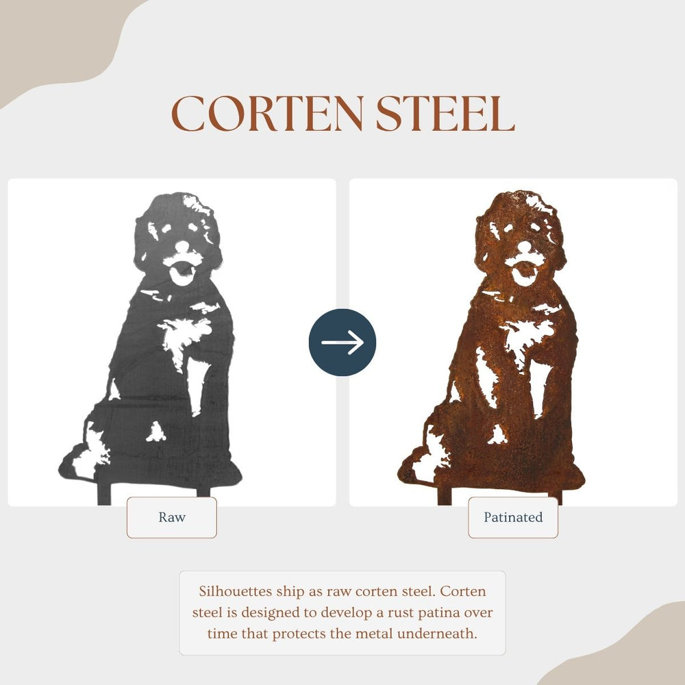 Metal Rescue silhouettes are handmade in the United States from sturdy 11 gauge premium weathering steel, also known as Corten steel. Each design is available in two different finishes- Corten steel and Black.