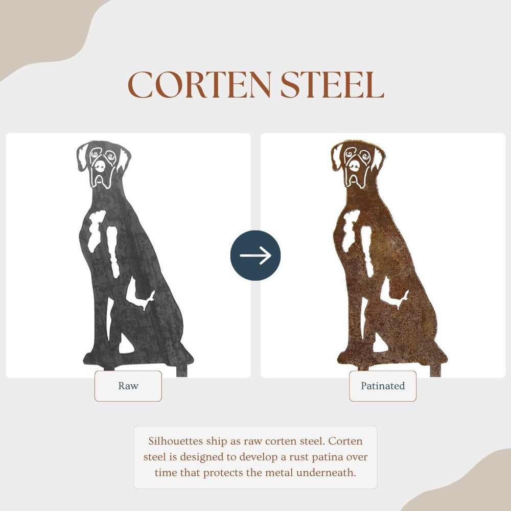 Metal Rescue silhouettes are handmade in the United States from sturdy 11 gauge premium weathering steel, also known as Corten steel. Each design is available in two different finishes- Corten steel and Black.