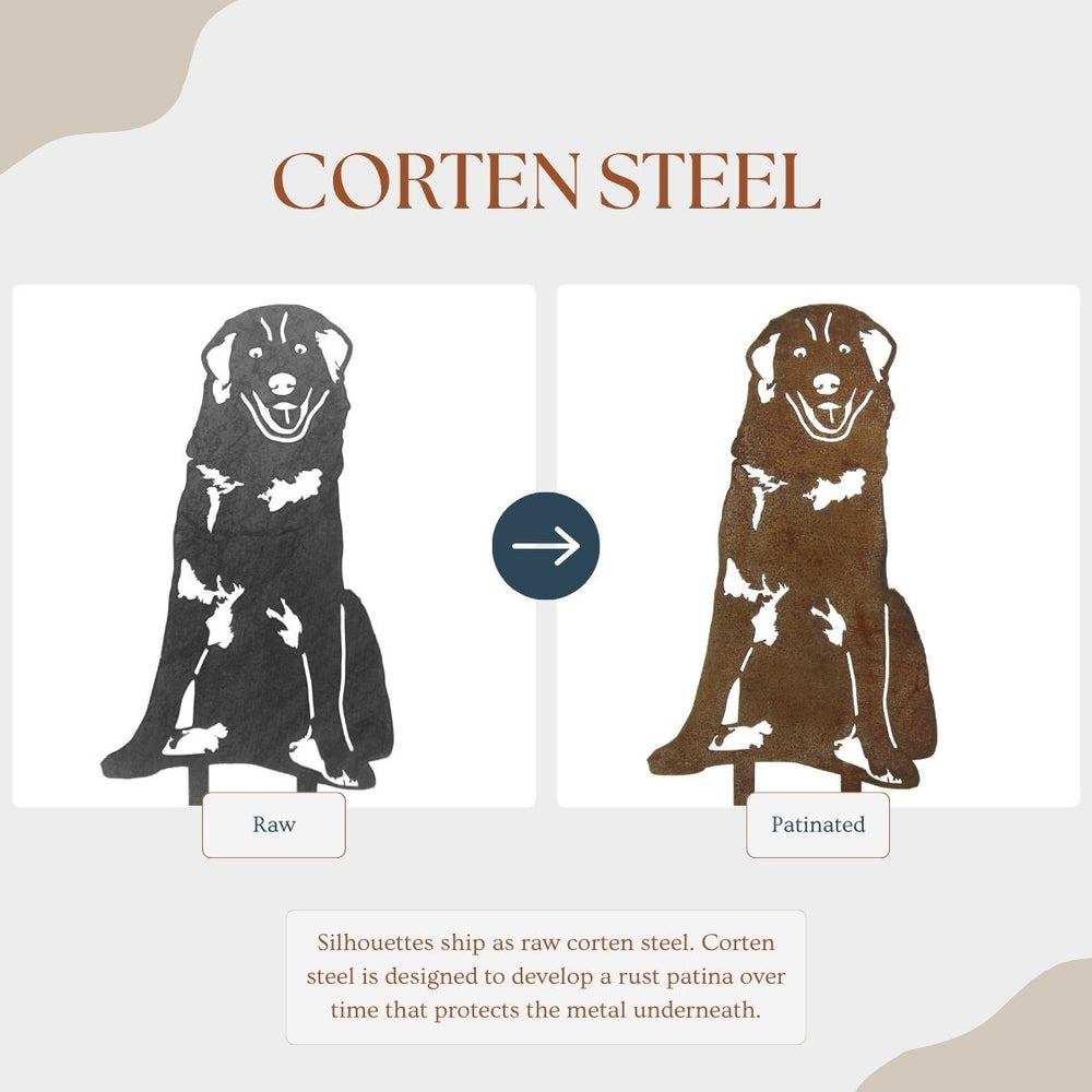 Metal Rescue silhouettes are handmade in the United States from sturdy 11 gauge premium weathering steel, also known as Corten steel. Each design is available in two different finishes- Corten steel and Black.