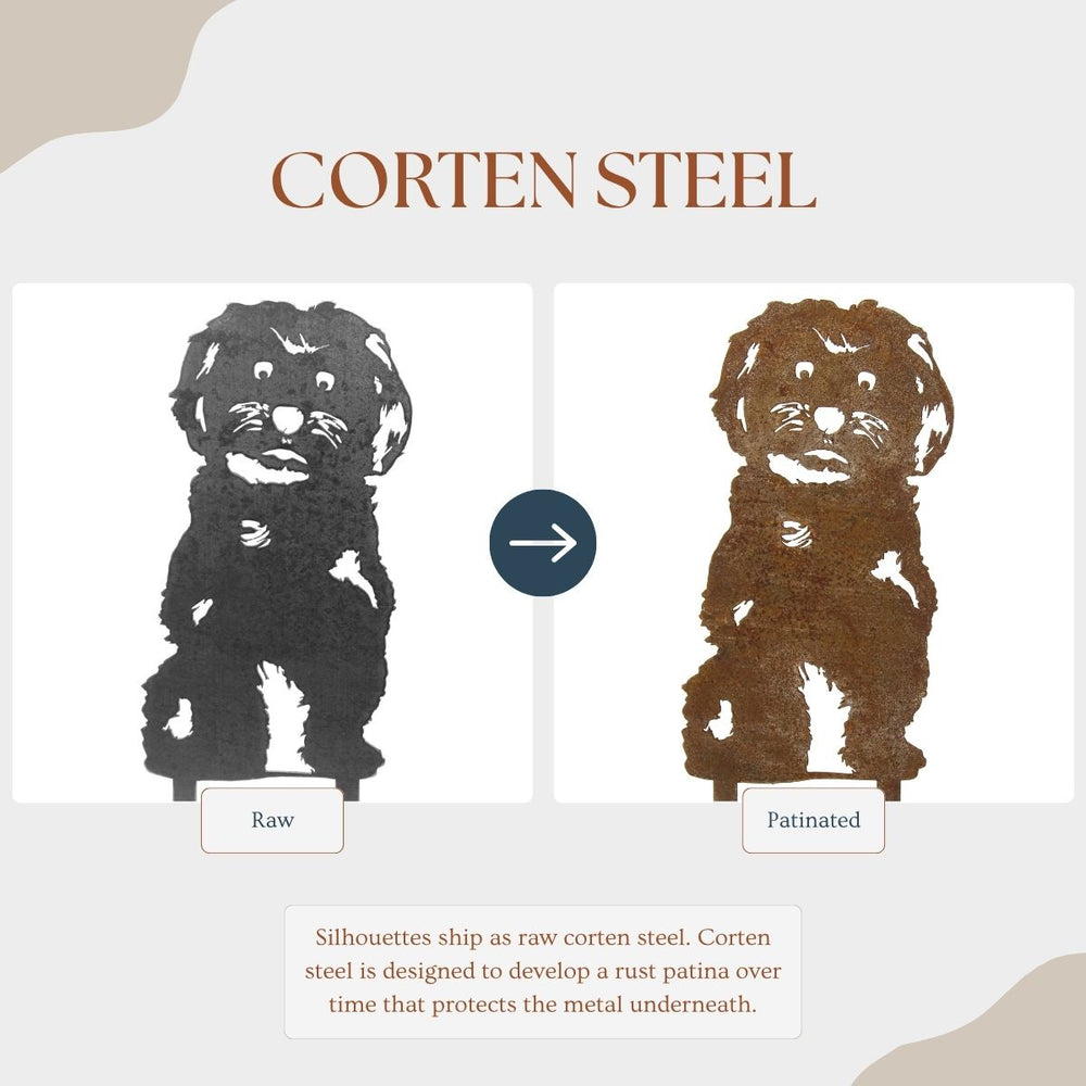 Metal Rescue silhouettes are handmade in the United States from sturdy 11 gauge premium weathering steel, also known as Corten steel. Each design is available in two different finishes- Corten steel and Black.