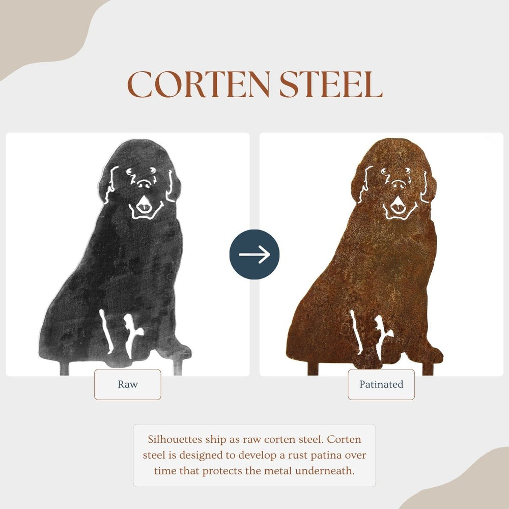 Metal Rescue silhouettes are handmade in the United States from sturdy 11 gauge premium weathering steel, also known as Corten steel. Each design is available in two different finishes- Corten steel and Black.