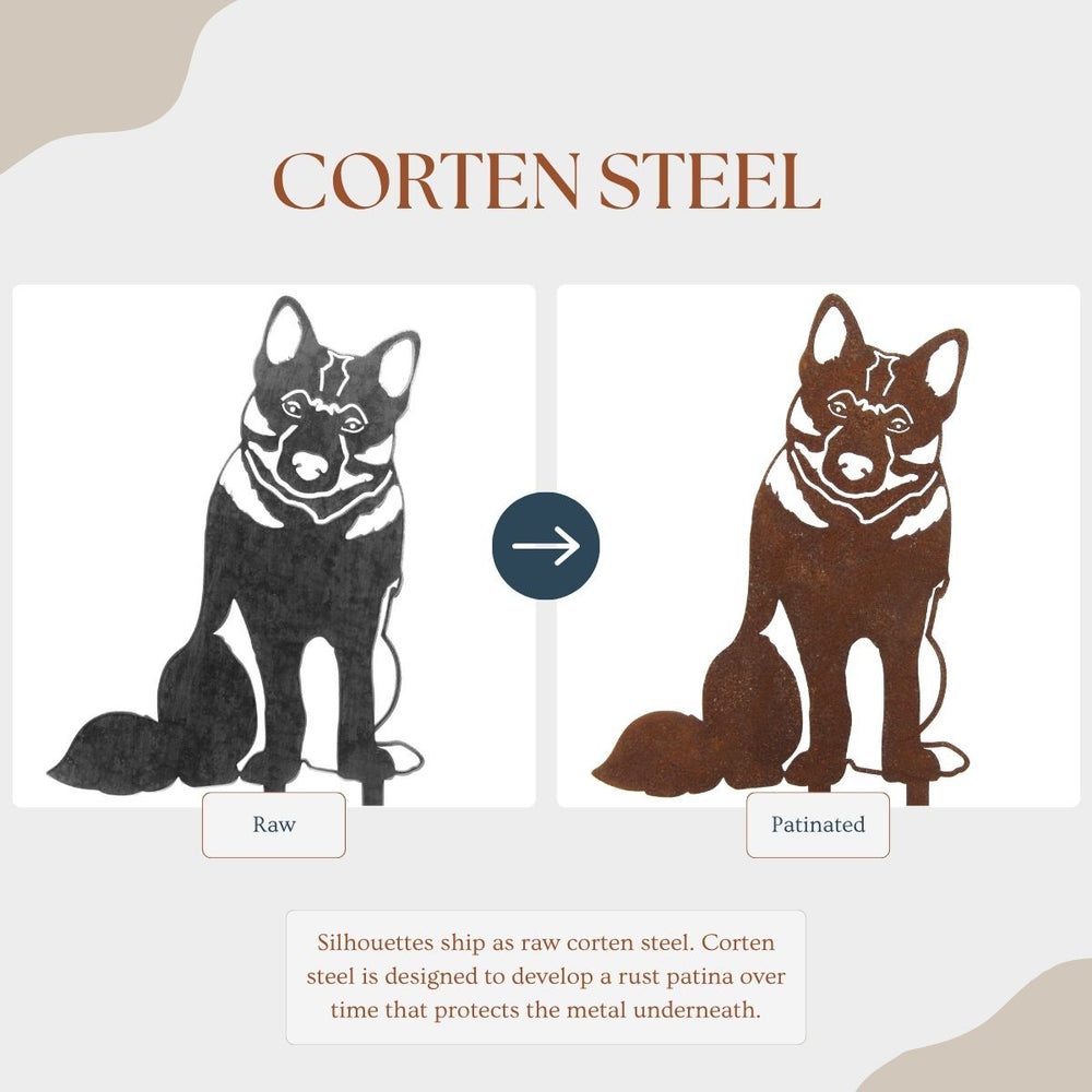 Metal Rescue silhouettes are handmade in the United States from sturdy 11 gauge premium weathering steel, also known as Corten steel. Each design is available in two different finishes- Corten steel and Black.
