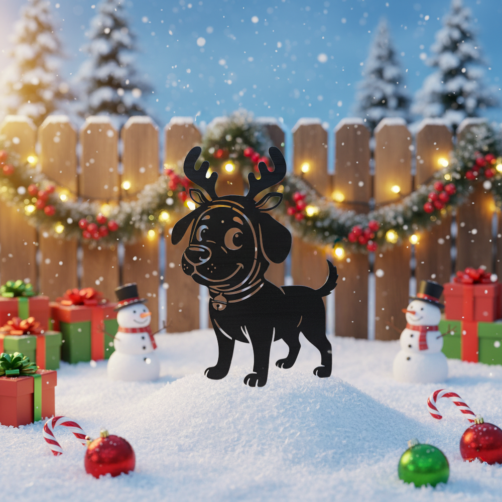 Meet Reindeer Pup, Santa’s most loyal helper in training. He’s been practicing his reindeer skills all season, jingling his bell and dreaming of joining the sleigh team. With a cheerful smile and festive antlers, he’s ready to lead the way for Christmas magic.
