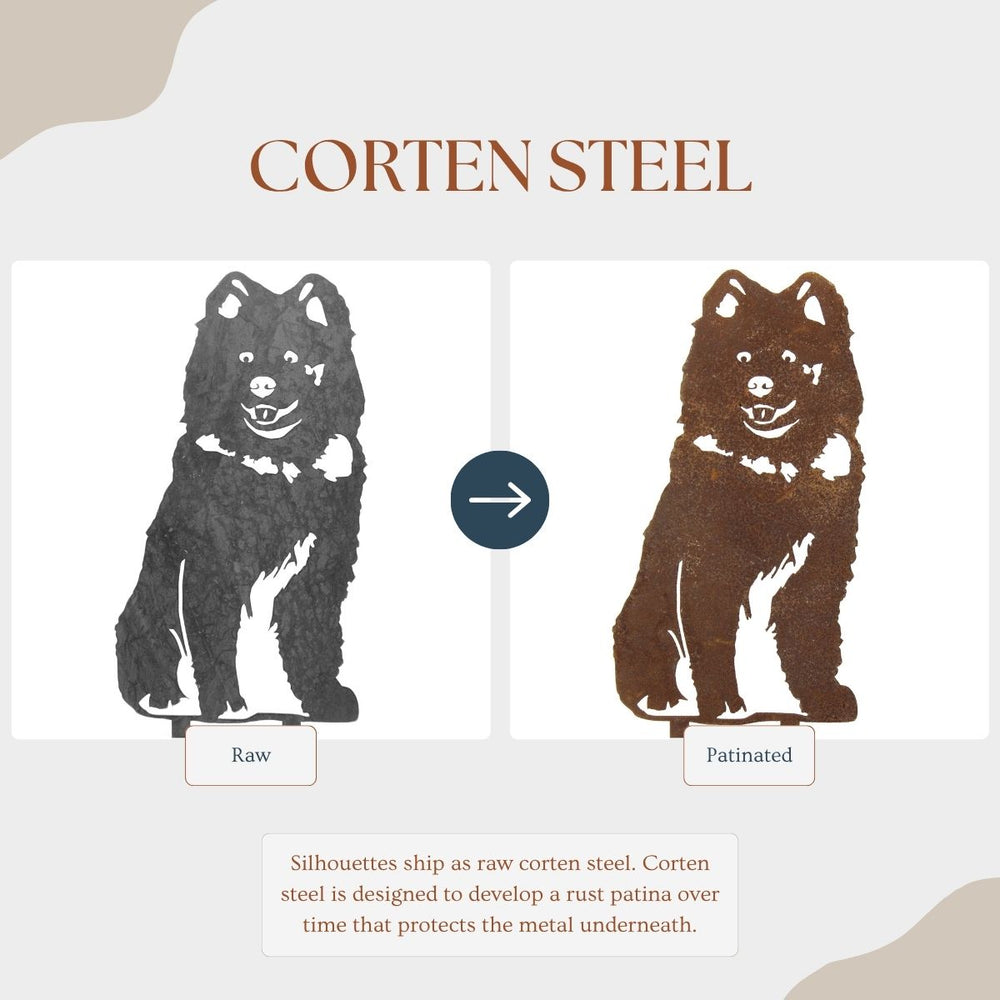Metal Rescue silhouettes are handmade in the United States from sturdy 11 gauge premium weathering steel, also known as Corten steel. Each design is available in two different finishes- Corten steel and Black.