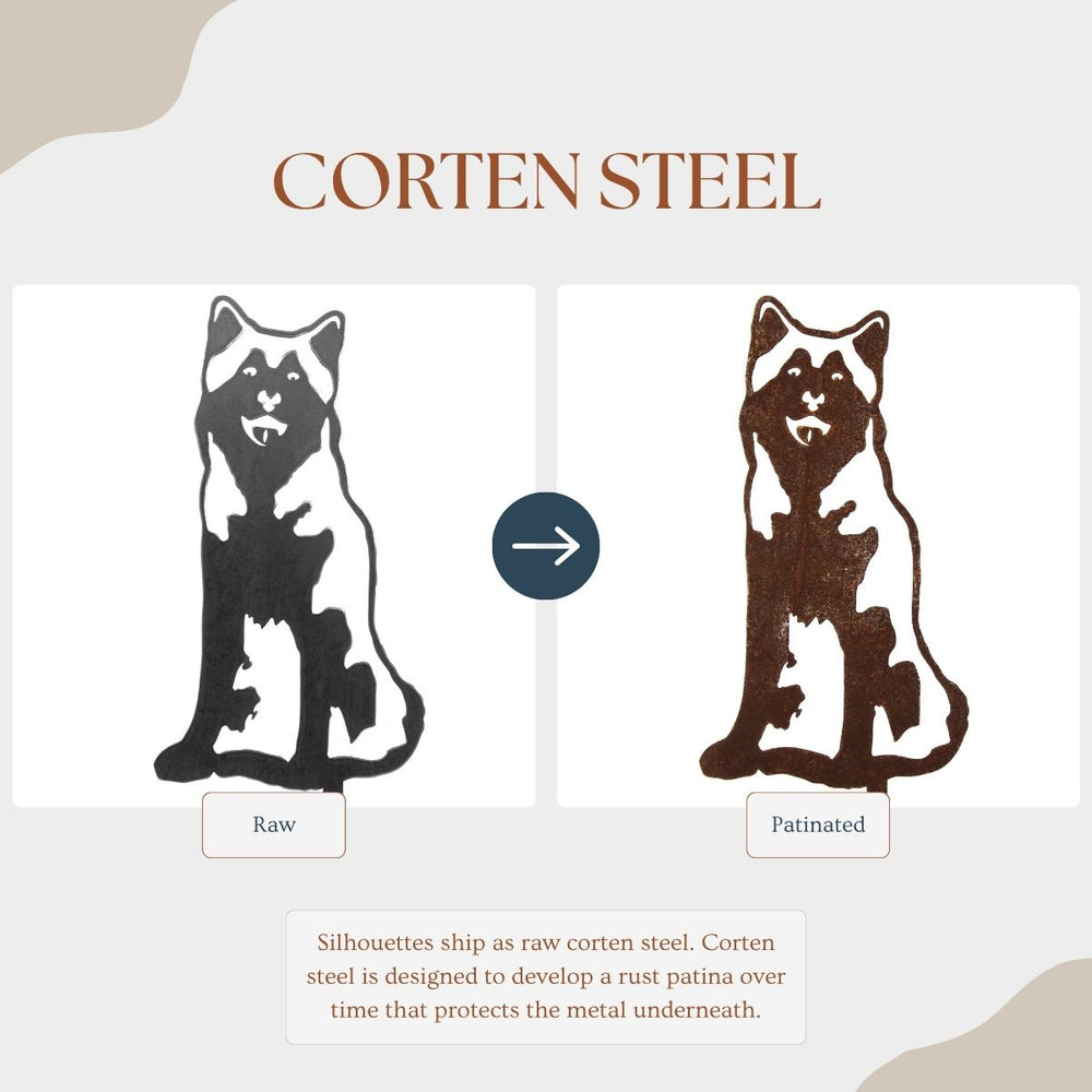 Metal Rescue silhouettes are handmade in the United States from sturdy 11 gauge premium weathering steel, also known as Corten steel. Each design is available in two different finishes- Corten steel and Black.